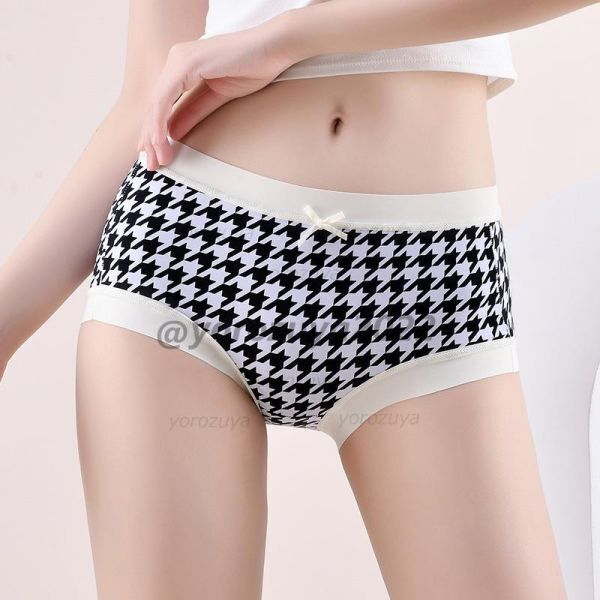 - 121-522-6 オシャレプリント アイスシルク ブリーフ ショーツ【千鳥柄,Lサイズ】レディース 下着 女性 新品 パンティー インナー .1