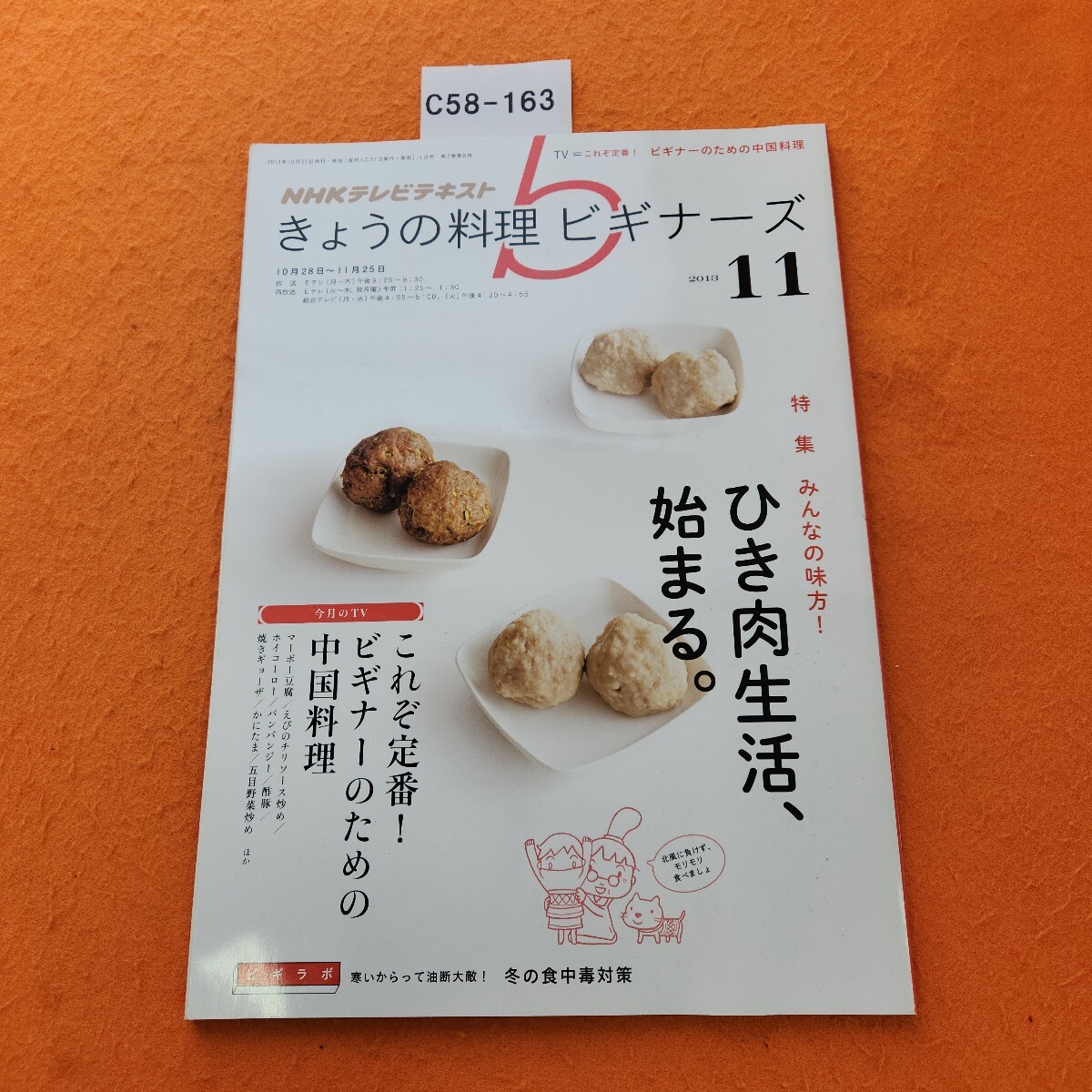 - C58-163 NHK きょうの料理 ビギナーズ 2013/11 特集 ひき肉生活、始まる。TV ビギナーのための中国料理