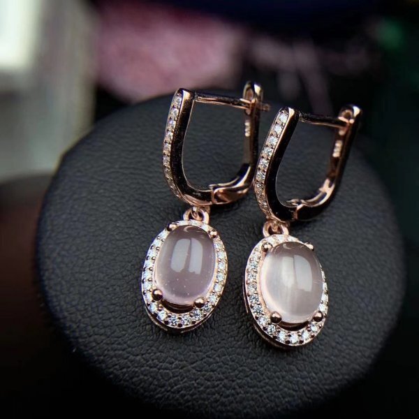ナチュラルローズクォーツドロップピアス、女性へのギフト、6*8mm