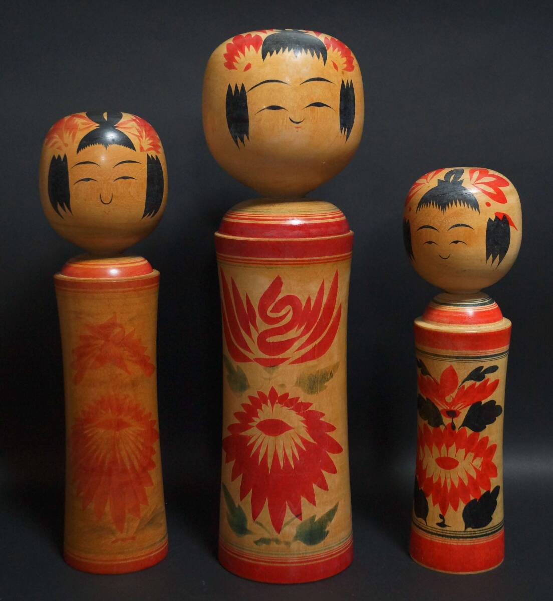 - 【芸】工藤忠二/岡崎斉司/加藤信一 作 大型伝統こけし総3点 郷土玩具 色絵木彫り鳴子 郷土玩具民芸品★時代物★s70612
