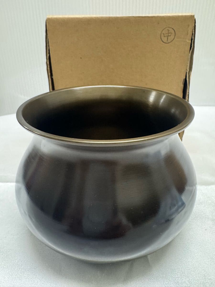 - 唐銅 エフゴ 建水 重:約540g 煎茶道具 茶道具 餌畚 袋型 えふご 唐金 銅製 湯こぼし 茶こぼし 金属工芸