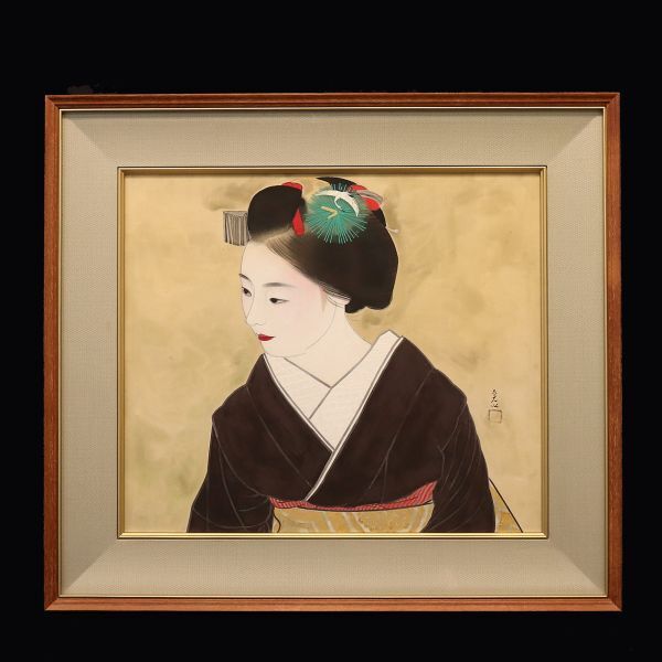 - 15■【真作】中村貞以 「彩装」 共シール 絹本 肉筆 長谷川貞信師事 大阪の人 額装