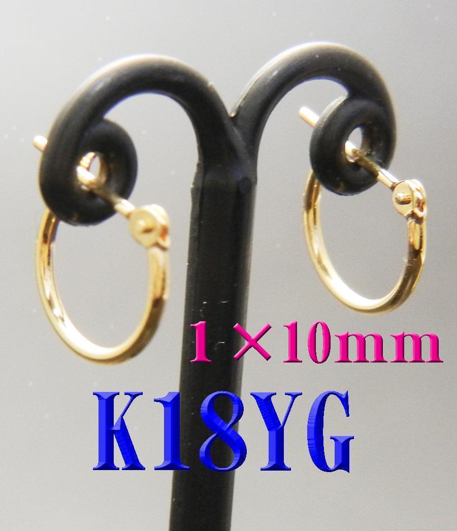 - 特別セール!K18 18金 1x10mm フープピアス 新品 日本製 スナップピアス 刻印有り
