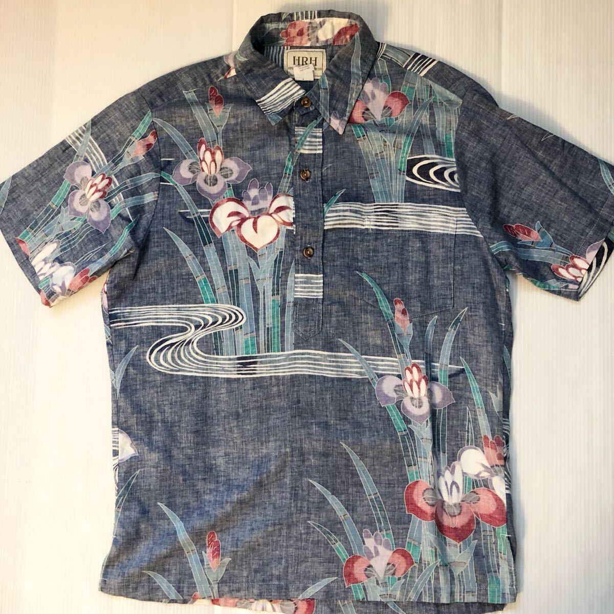 - HRH MADE IN HAWAII Lくらい 裏使い 花柄 リーフ柄 プルオーバー ハワイアンシャツ アロハシャツ