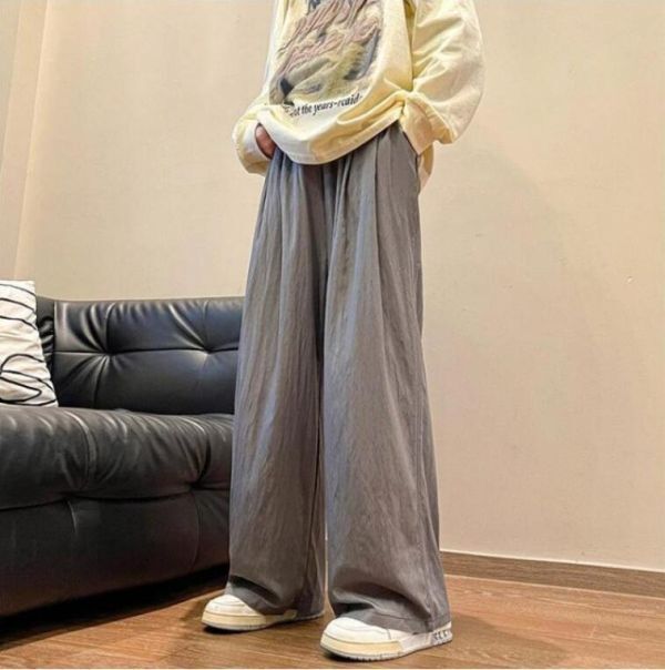 - 春 夏 秋 推薦 /メンズ ワイドパンツ 大きいサイズ ウエストゴム 無地 シンプル しわ加工 長ズボン 薄手 長パンツ / ダークグレー