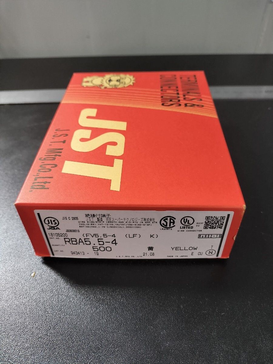 > JSTビニル絶縁丸端子 RBA5.5-4 黄色 1箱500個入 新品 未開封品0-0603-3