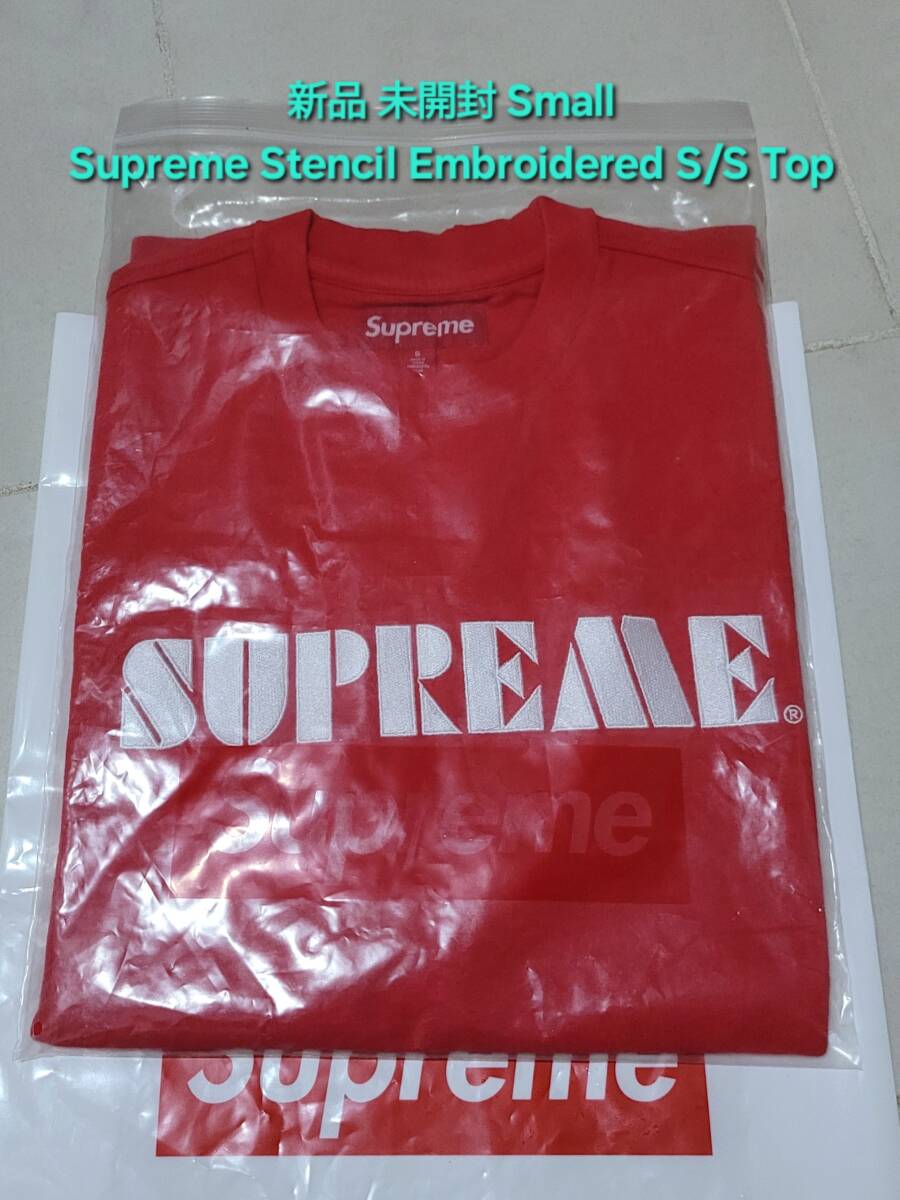- 新品 未開封 Supreme Stencil Embroidered S/S Top シュプリーム ステンシル エンブロイドオーダー エス/エス トップ Small Red