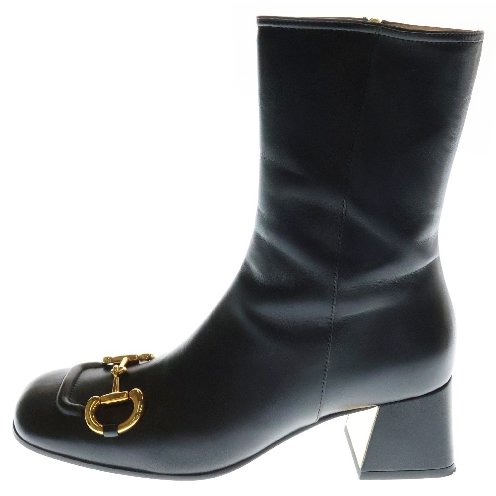 > GUCCI グッチ ホースビット スクエアトゥ レザー ショートブーツ ブラック 643888 レディース
