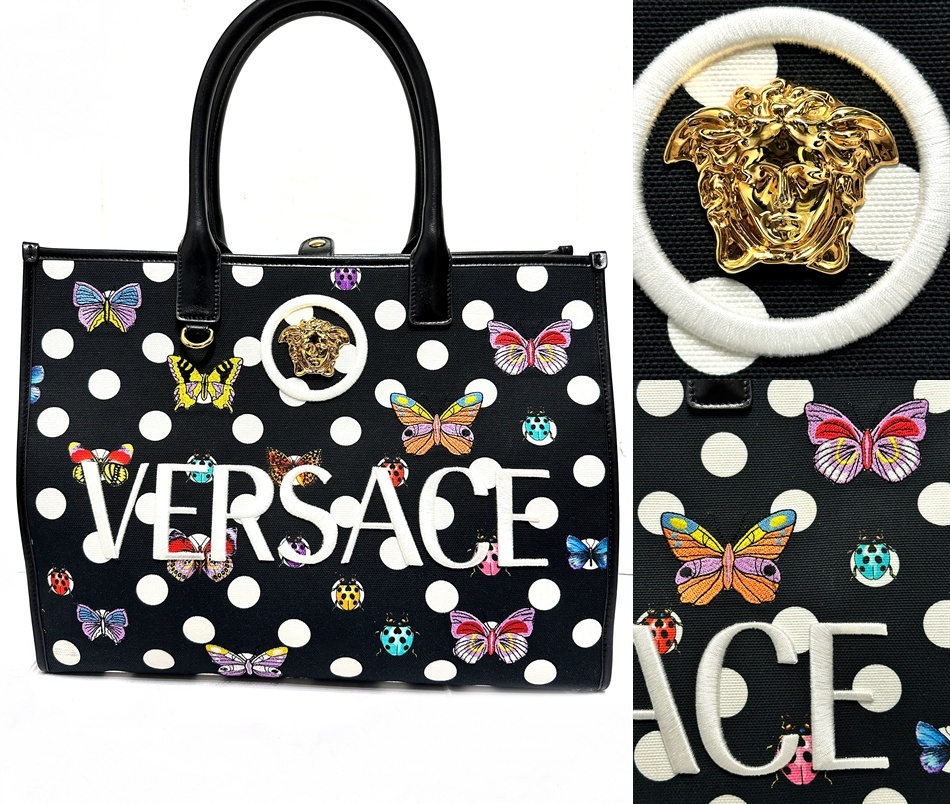 > 良品 レア 限定 コラボ VERSACE ヴェルサーチ X デュア リパ バタフライ ラージ トート バッグ 定価30万 マルチ カラー バグ 希少