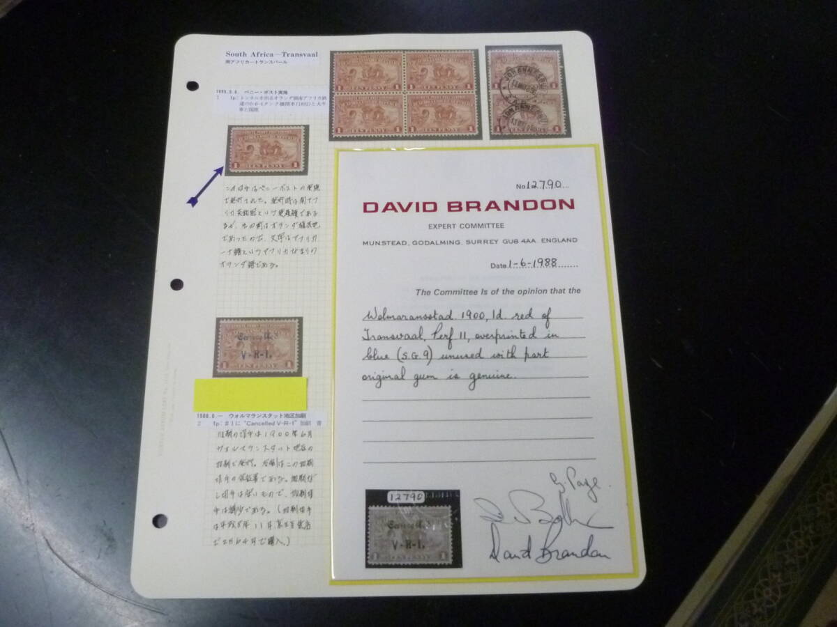 - 鉄道切手№1 南アフリカ トランスバール 1895-1900年 ウォルマランスタット地区加刷(稀少)・他 鑑定書付 未使用OH・VF ※説明欄必読