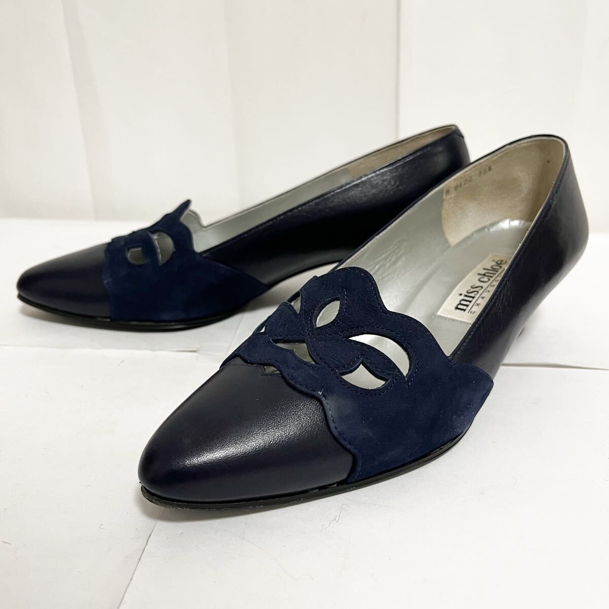 - 和758★ miss chloe ミスクロエ レザー パンプス ヒール スエード切替 35.5 ネイビー ブラック レディース