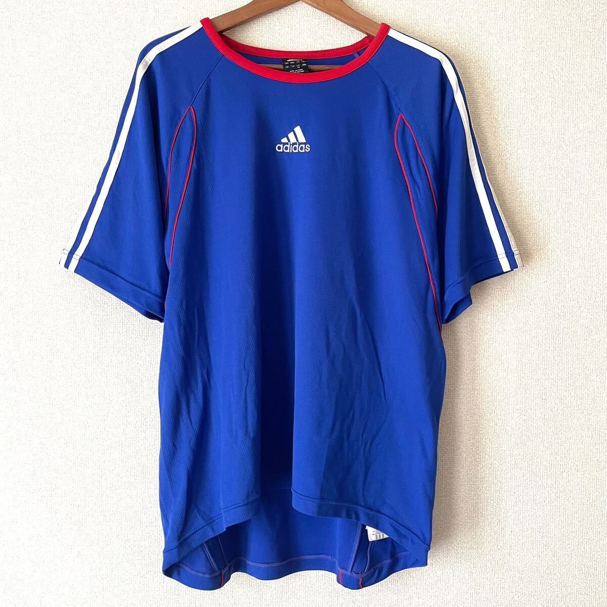 > 美品★アディダス サッカー ユニフォーム Tシャツ adidas ブルー プラクティスシャツ 半袖 ゲーム ポリエステル 日本代表 XXL 古着 00s