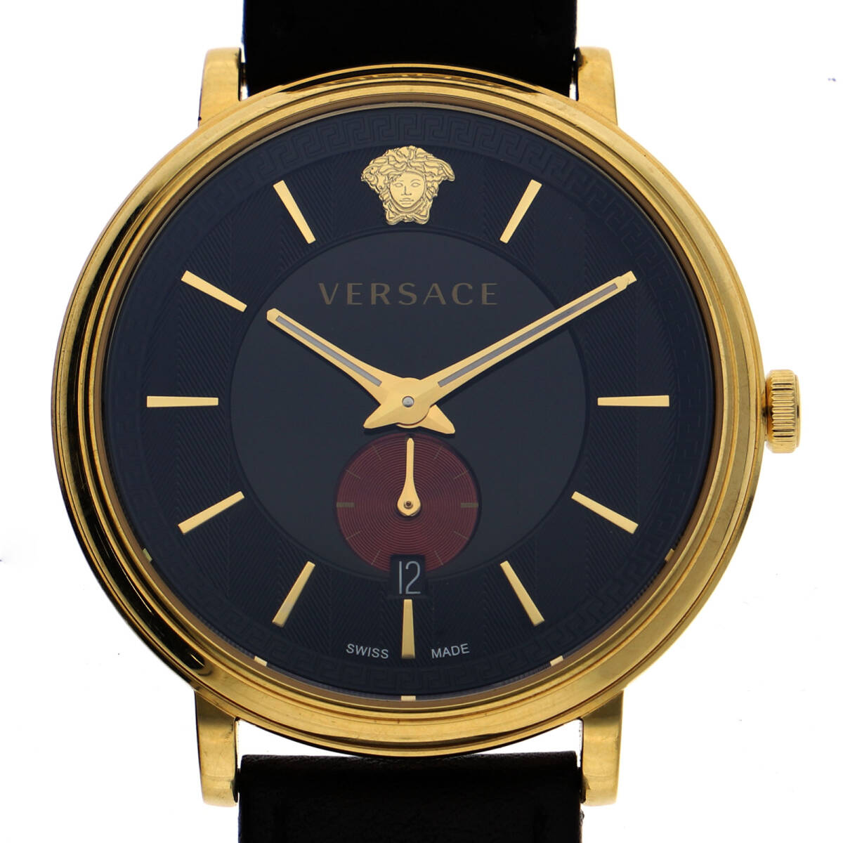 > VERSACE ヴェルサーチ VEBQ ブラックダイヤル GP/SS/レザー クオーツ メンズ【130940】