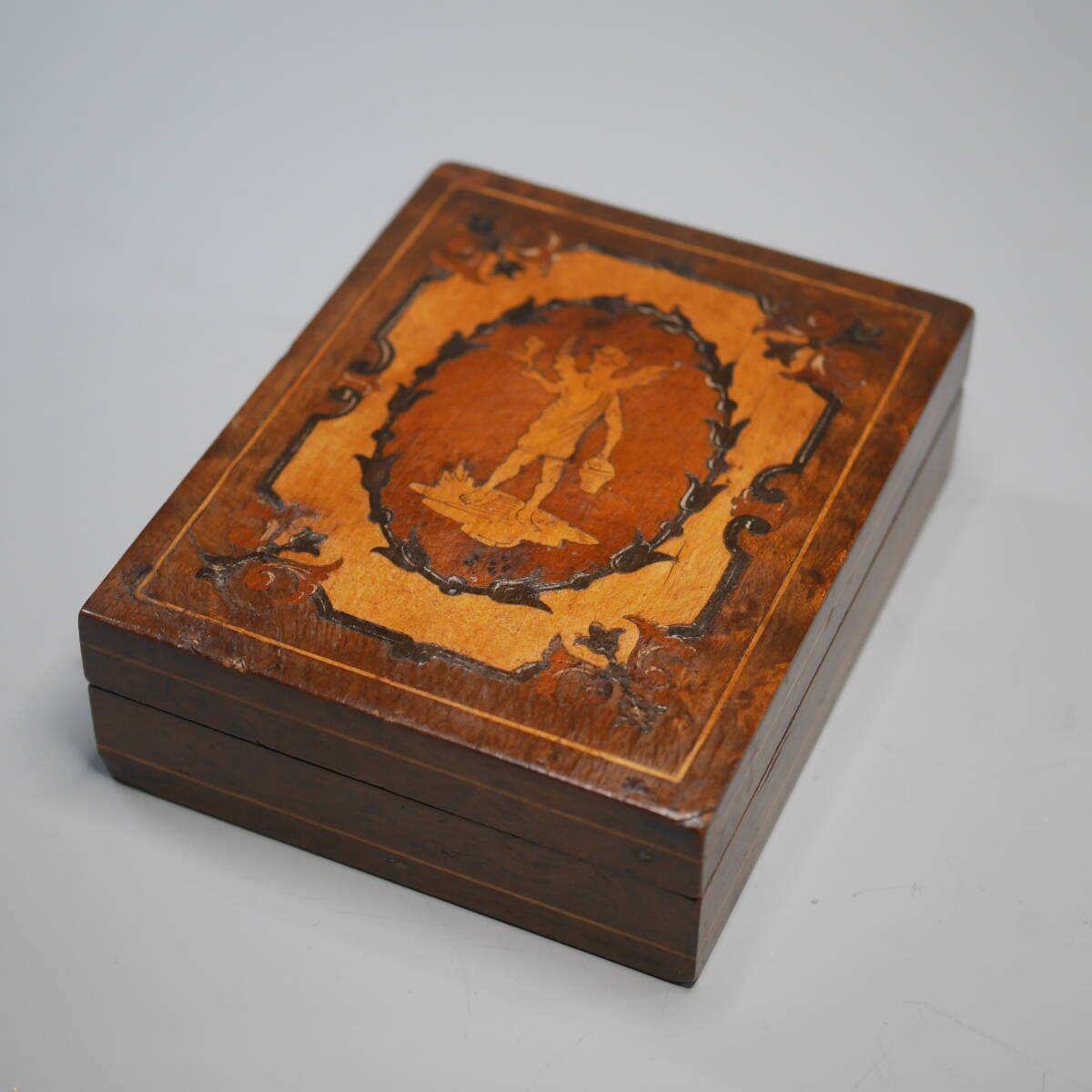 - 即決!イギリス製 インレイ 象嵌 木製 BOX ヴィクトリアン 西洋アンティーク 英国 天使 エンジェル マホガニー 1900年代 ジュエリーBOX・I