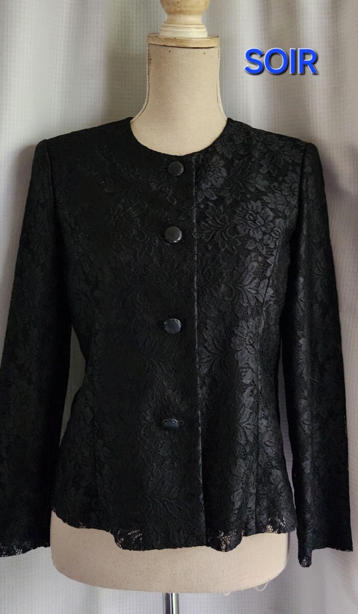 - 大変美品 ソワール ノーカラーレースジャケット ブラックフオーマル ノーカラージャケット レースジャケット