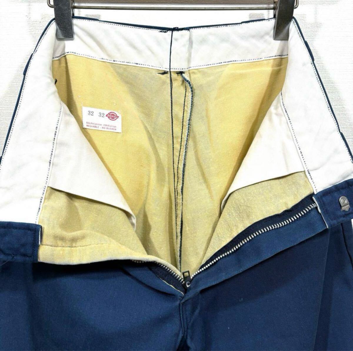 > 希少 裏地付 W32 良品 70s 80s USA製 チビタグ アルミジップ ディッキーズ 874 紺 ネイビー ビンテージ アメリカ レア 古着 ワーク 70年代
