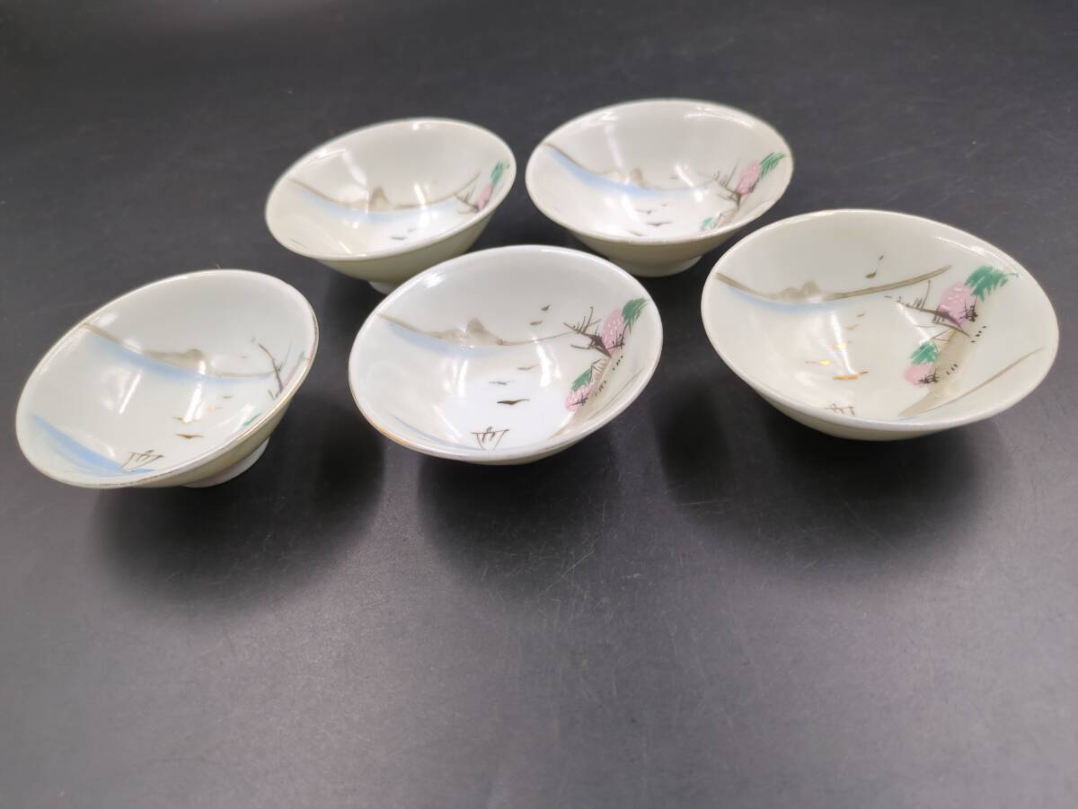 - 店三56 掘り出し物 茶道具 九谷焼 盃5客 手描き 時代◇和食器有 田焼 湯呑 皿 花瓶 花器