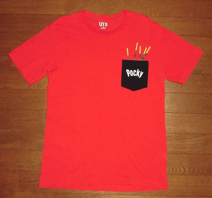 - UNIQLO X Pocky ユニクロ ポッキー チョコレート 企業 コラボ UT 限定 Tシャツ 胸ポケット付 江崎グリコ RED S USED 美品/隠しメッセージ