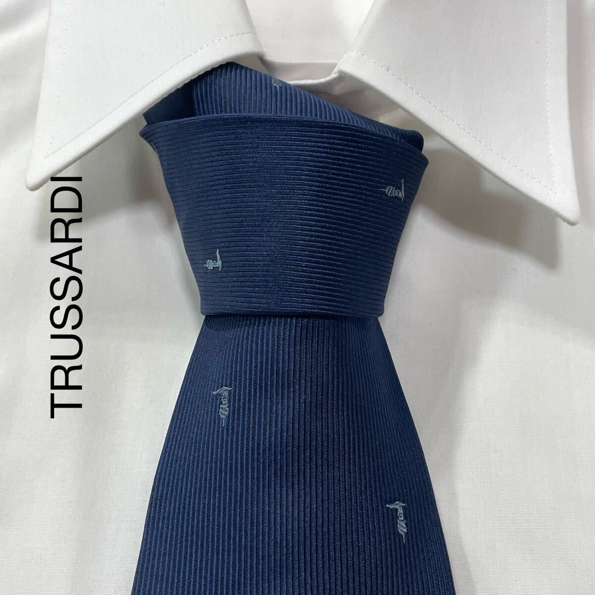 - TRUSSRDI トラサルディ ロゴ 刺繍 シルク ネクタイ イタリア製 ネイビー TG2383