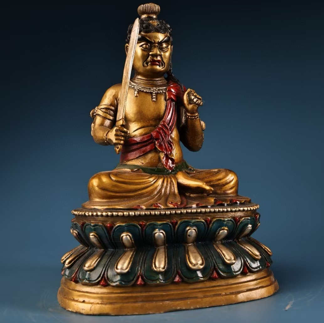 > 仏像 清代 旧蔵 チベット古寺 古銅彩繪描金不動明王佛像 銅製 銅琉金 唐物 收蔵品 時代物 古美術 古置物 希少珍品 供養品 文房具6.17