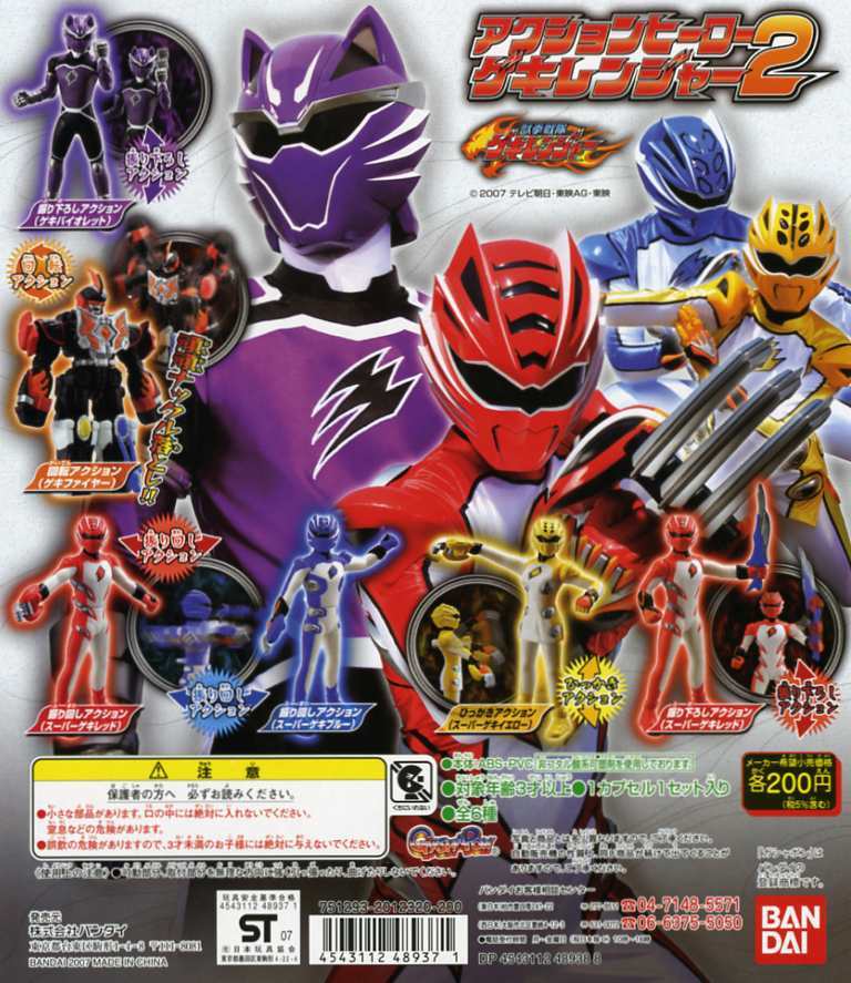 - ◆獣拳戦隊ゲキレンジャー・アクションヒーロー PART.2…全6種 (スーパーゲキレッド/ゲキバイオレット/ゲキファイヤー/他) 可動フィギュア