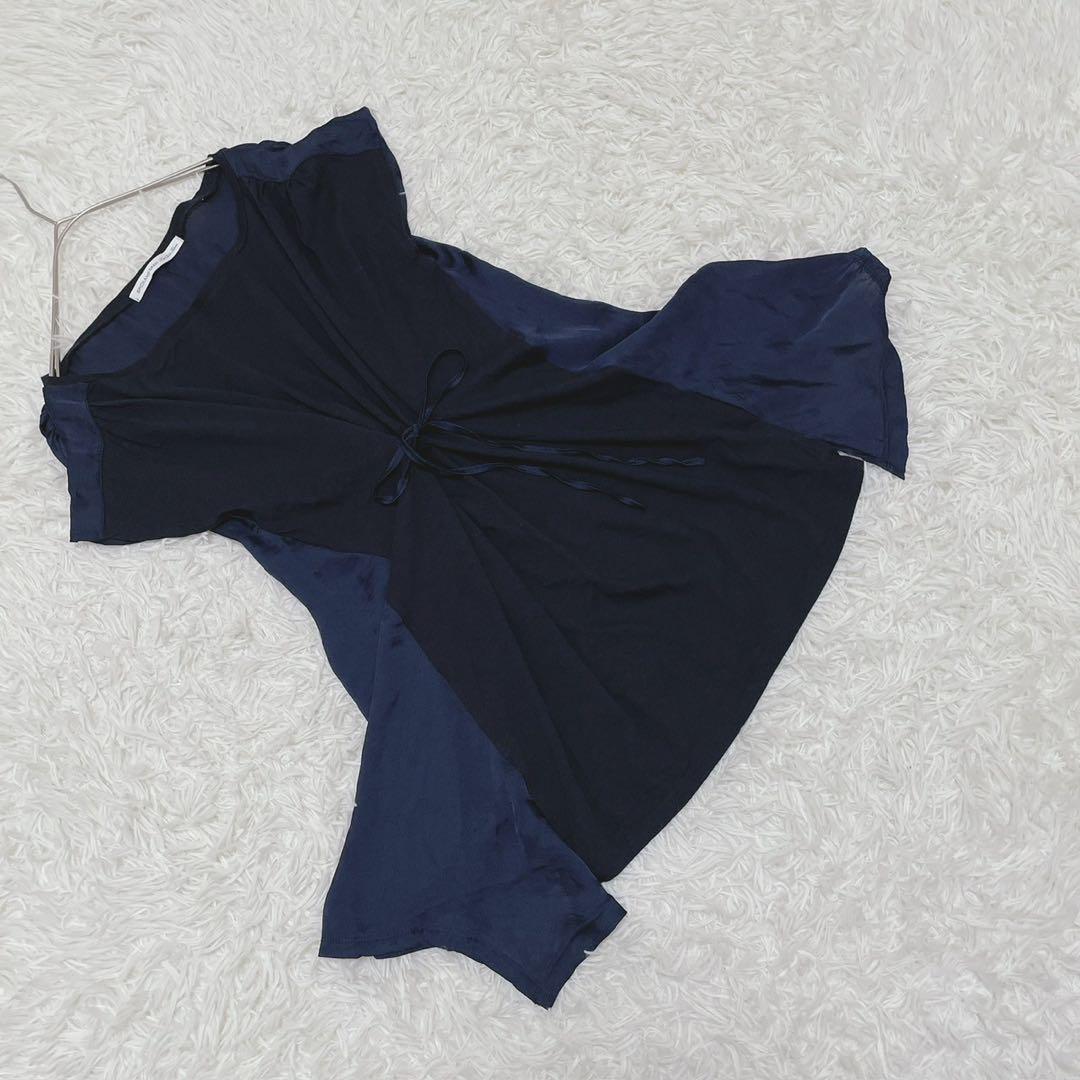 - 『スピック&スパン』 バイカラーチュニック 半袖 前リボン 変形ヘム 日本製