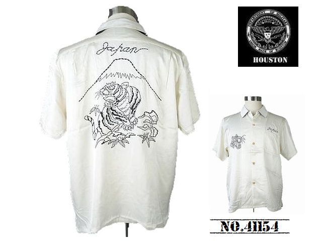- 【送料無料 35%OFF】HOUSTON ヒューストン 刺繍スーベニアシャツ 「TIGER」柄 NO.41154 OFF WHITE_Lサイズ