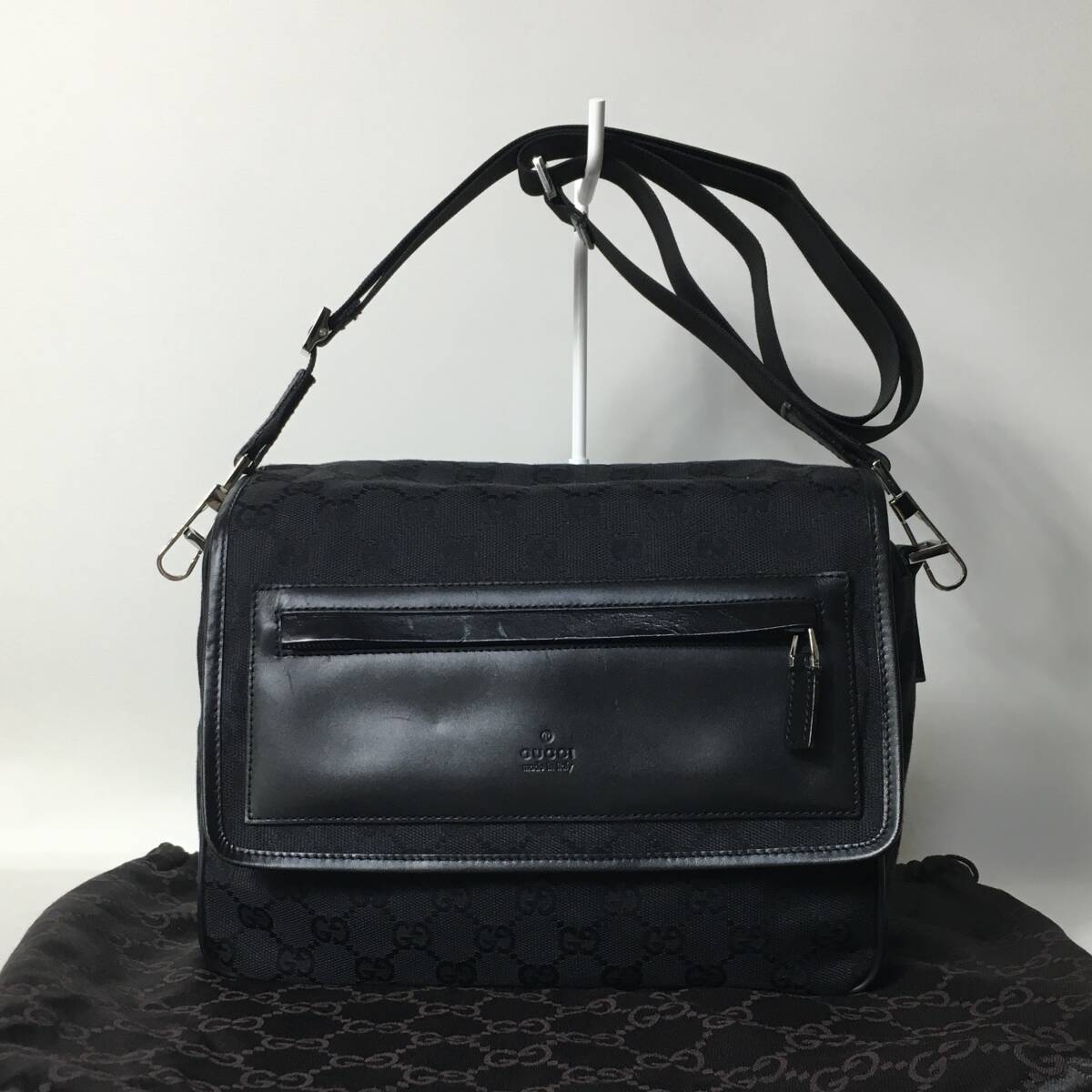 - 75B330|美品|グッチ GGキャンバス ショルダーバッグ ブラック