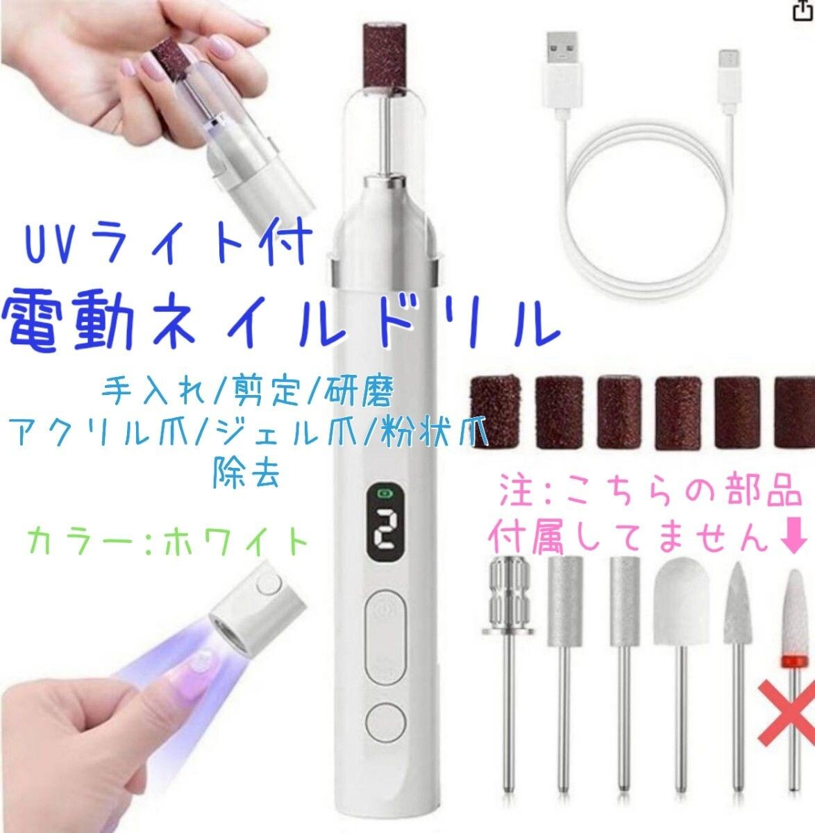 - ネイルマシン 電動ネイルドリル ホワイト UVライト付 多機能爪切り ワイヤレス 充電 低騒音 コンパクト 研磨 アクリル爪除去 角質層