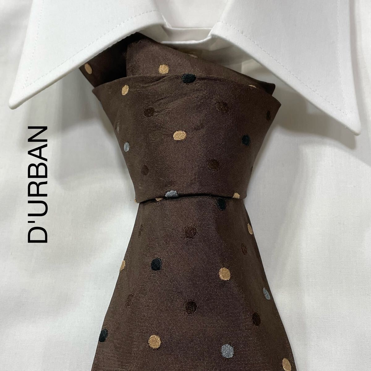 - D'URBAN ダーバン 水玉 ジャガード シルク ネクタイ イタリア製 ブラウン TG2503