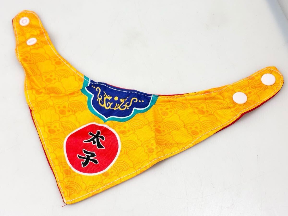 - 猫用 ペット スタイ 首飾り フリーサイズ ダブルスナップ 中国風 3種 太子 黄色系 首回り 約25cm前後 ファッション 前掛け 送料込み ①