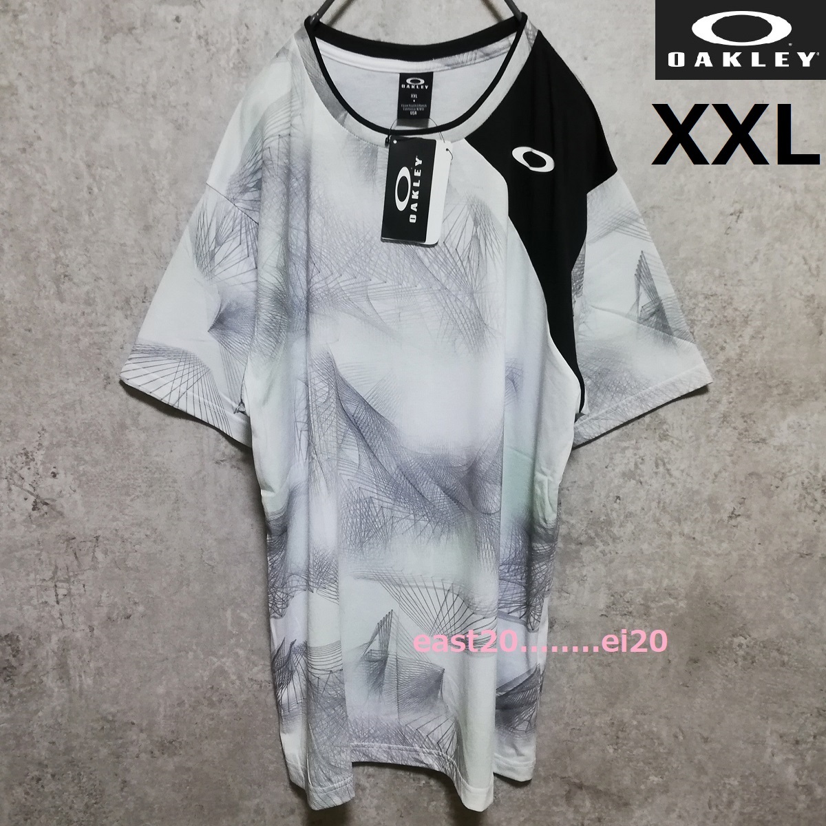 > 2XL 新品 OAKLEY オークリー テクニカル グラフィック 柄 メンズ 機能 Tシャツ XXL 白 ホワイト 未使用 トレーニング ゴルフ 即決 送料無料