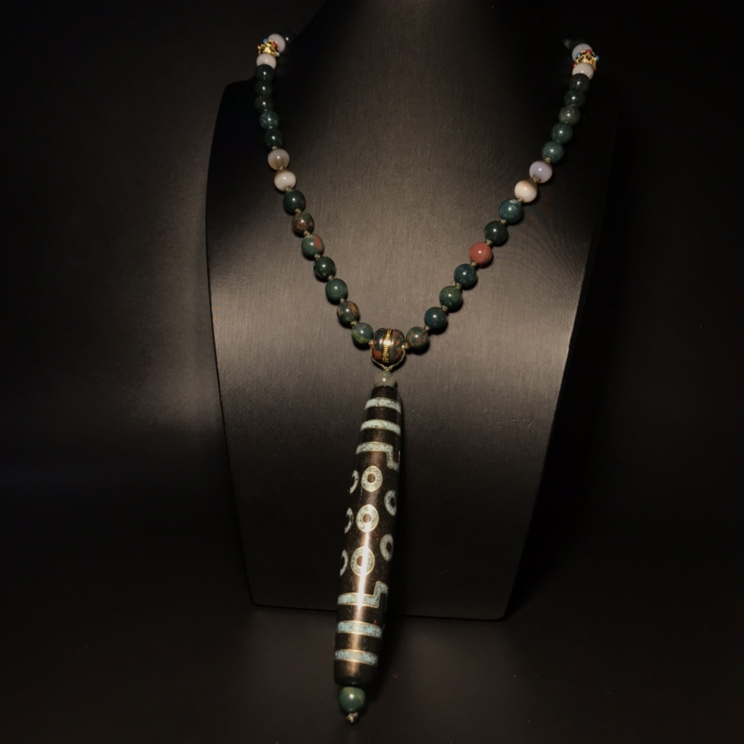 > 蔵友旧蔵出 瑪瑙製 細密彫 象雄天珠配錯金絲十六眼象雄天珠ネックレス本 根付裝身具 希少珍品 貴重品 置物 古賞物 中国古玩 中国古美術品