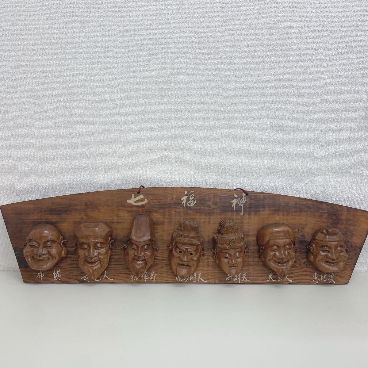 - refle● 七福神 壁掛け お面 木彫り 面飾り 縁起物 木製 工芸品 インテリア オブジェ 現状品