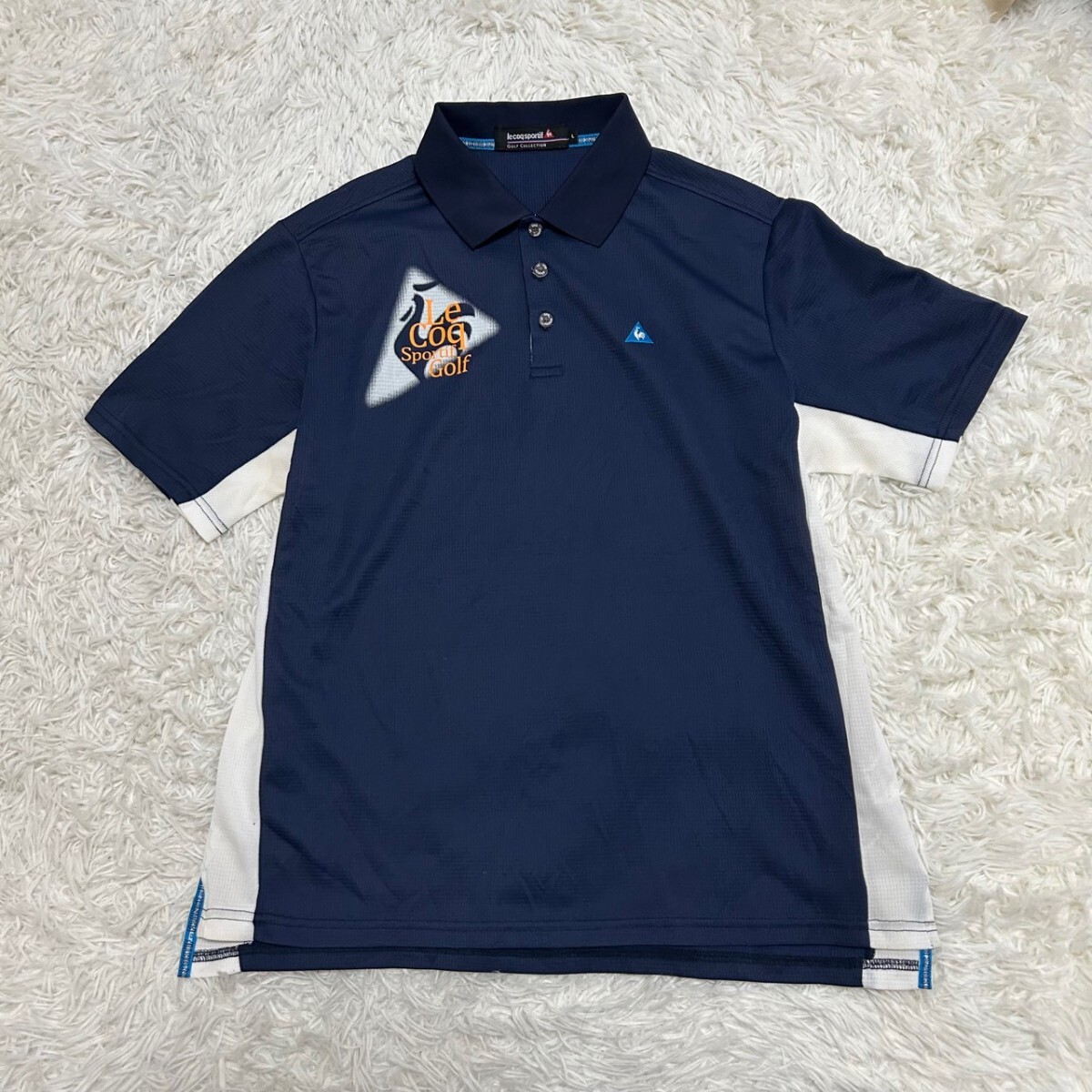> le coqsportif golf ルコックスポルティフ ゴルフウェア 半袖ポロシャツ 半袖シャツ ネイビー サイズL