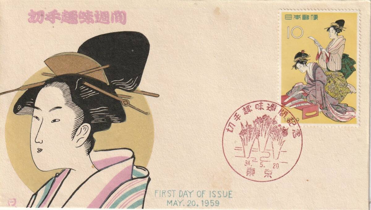 - FDC 1959年 切手趣味週間 10円 源氏 中村浪静堂