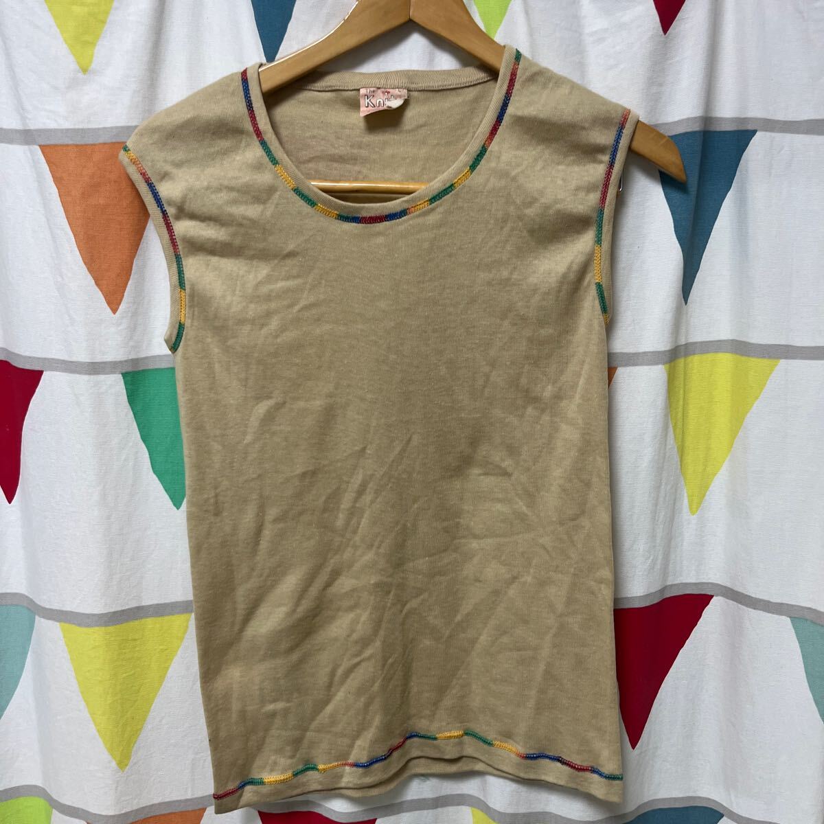 - ビンテージ70's〜80'sデッドストック レインボーステッチのー ノースリーブTシャツ タンクトップ カットソー