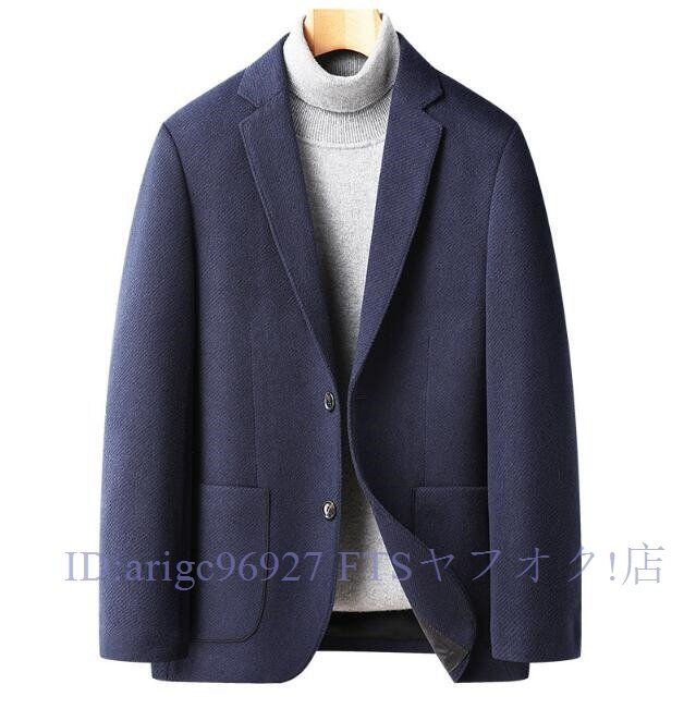 > 新品★上質 ウールコート メンズ テーラードジャケット ブレザー セレブ WOOL 紳士スーツ 背広 アウター 無地 手作りブルー 3XL