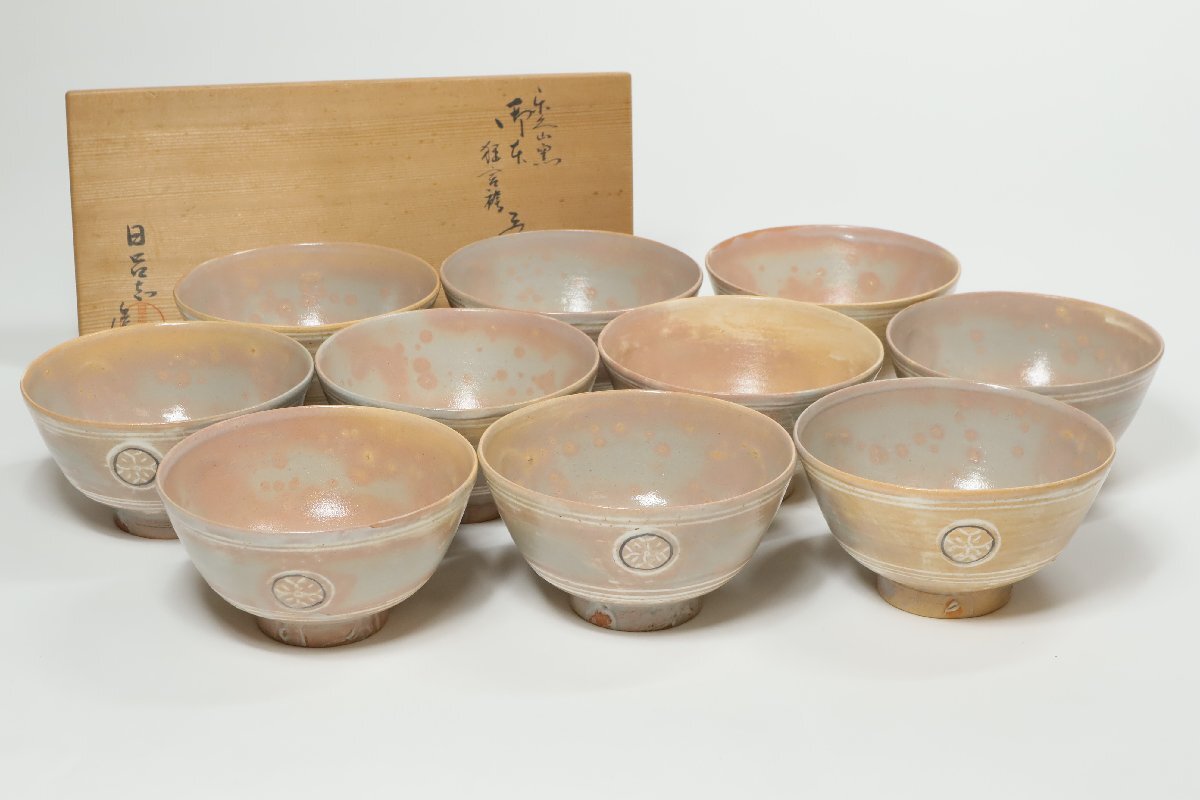 ・駕洛窯 清水日呂志 御本狂言袴数茶碗 拾客 共箱 /茶道具 茶器 萩茶碗 萩焼 |