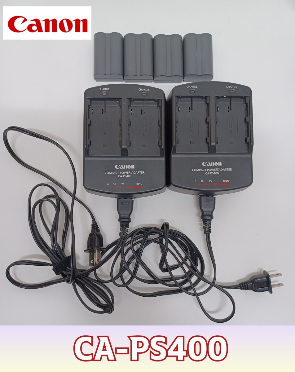 > 岩①)Canon 充電器 CA-PS400 2点セット コンパクトパワーアダプター バッテリー付き 純正品 バッテリーチャージャー 中古品 250619(L-1-2