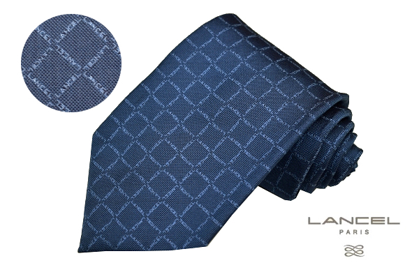 > N-3021★送料無料★超美品★LANCEL ランセル★イタリア製 ブルー青色 ロゴ チェック レジメンタル 織り生地 シルクネクタイ