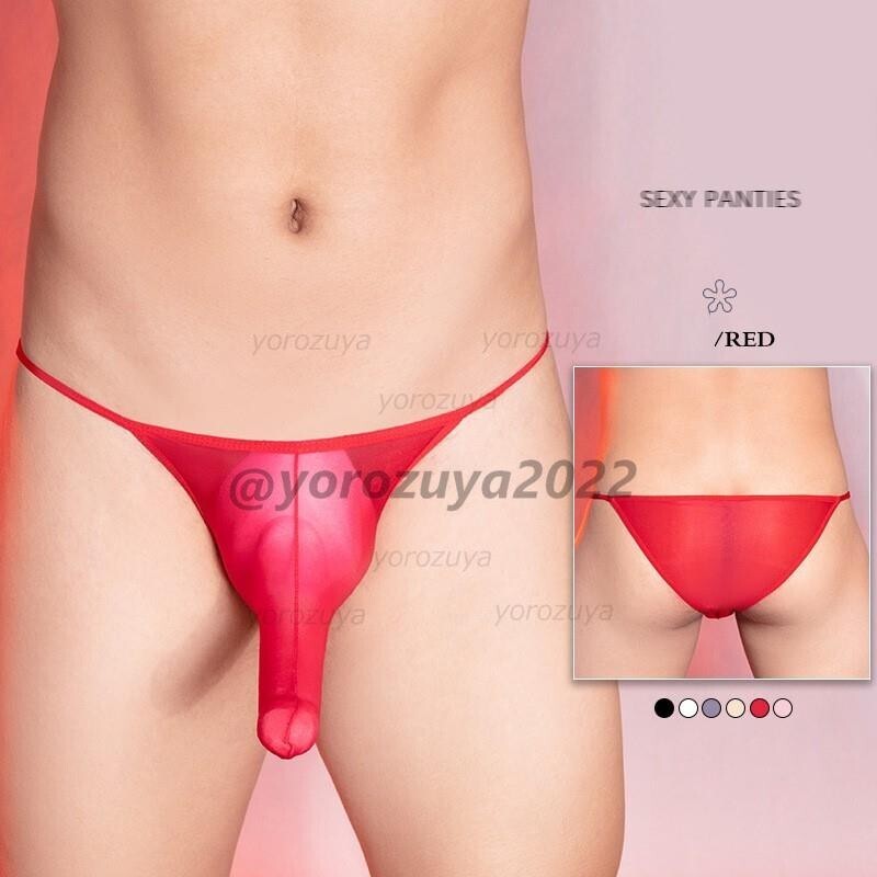 - 136-157-6 メンズ シースルー 勃起 ペニスブリーフパンツ【レッド,F】男性 下着 エロ セクシー パンティ ゲイ ランジェリー ショーツ .1