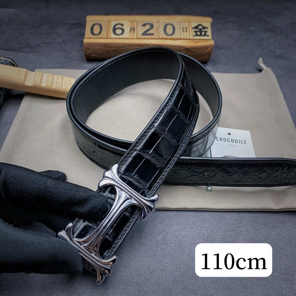 - 希少※ベルト※クロコダイル メンズベルト レザーベルト 本ワニ革 腹革使用 穴開可 高級バックル 穴あけ器具付 幅3.8cm 全長110cm ビジネス