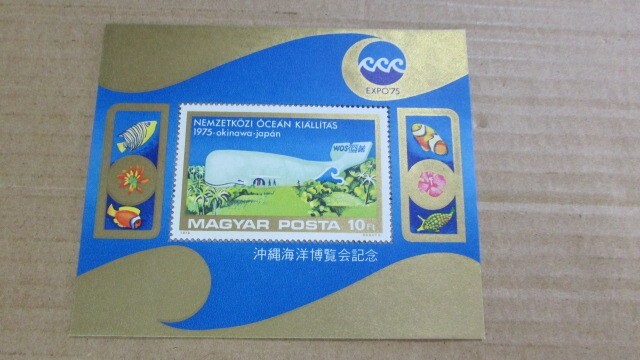 - × 小型切手 ハンガリー 沖縄海洋博 1種小型完 1975