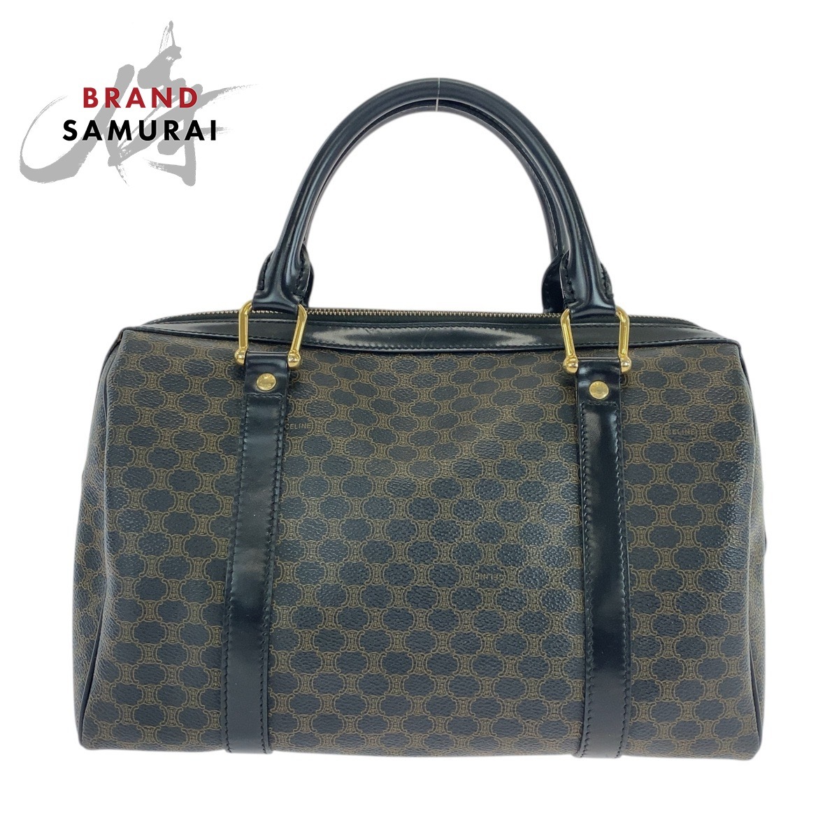 > 美品 CELINE セリーヌ マカダム ブラウン ブラック ゴールド金具 PVC DM00/1 ハンドバッグ ボストンバッグ レディース 503531
