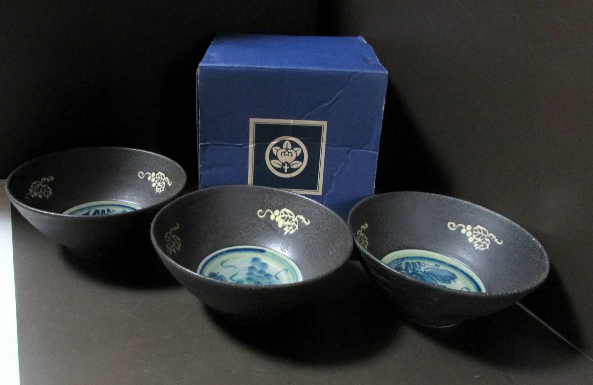 - たち吉(橘吉)中鉢(15㎝)3客組 葡萄紋様