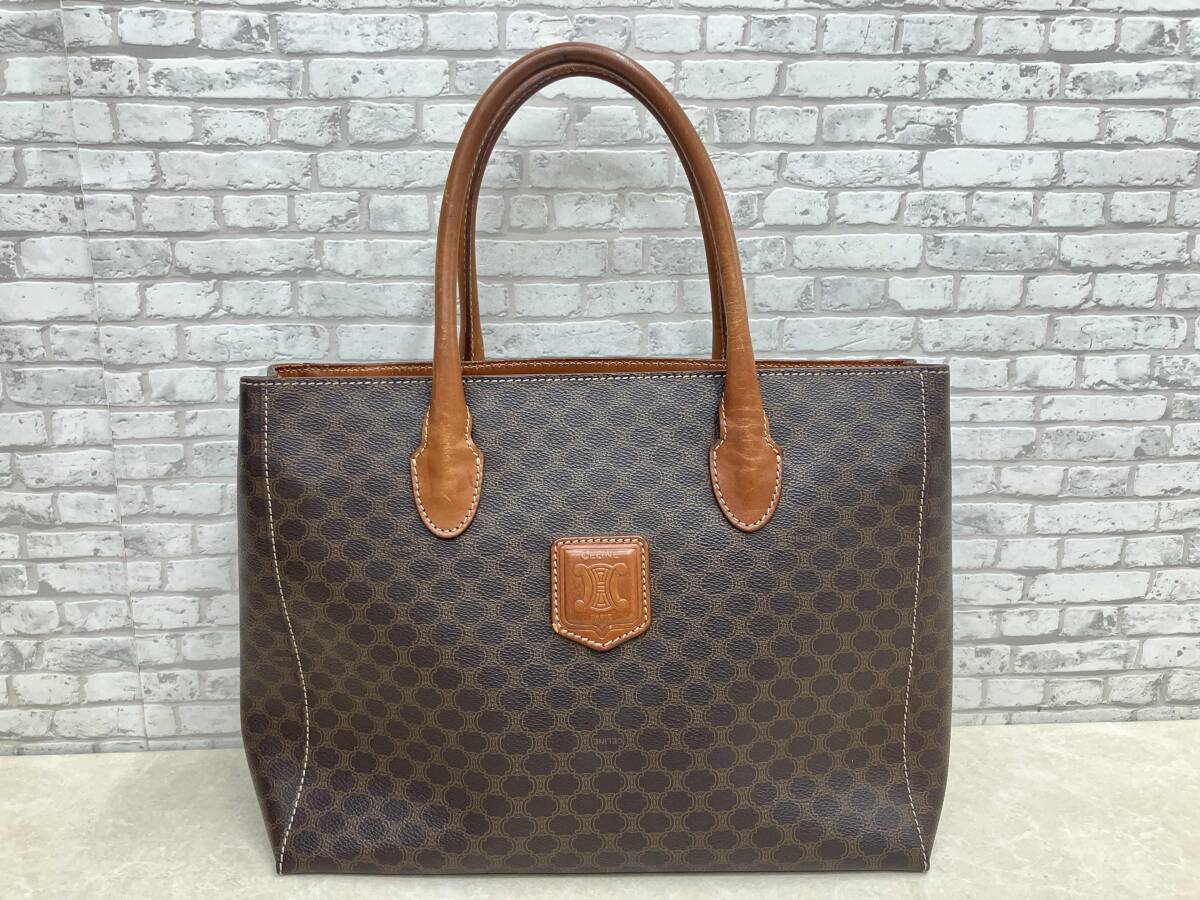 - 鑑定書付 CELINE セリーヌ マカダム柄トートバッグ ハンドバッグ MC97 ブラウン PVC イタリア製