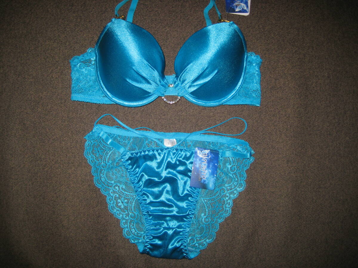 - 超光沢 ツルツル テロテロ サテン ブラ&ショーツ D75/ターコイズ/Mサイズ/新品タグ付