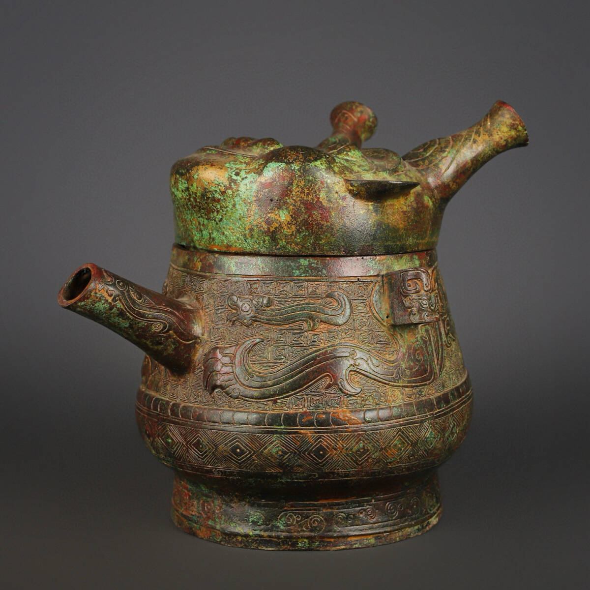 - ◆旧家蔵出◆古美術 中国古玩 戰國時期 古銅製 青銅器 銘文 人面壷 置物 古賞物 擺件 骨董 時代物 AT17