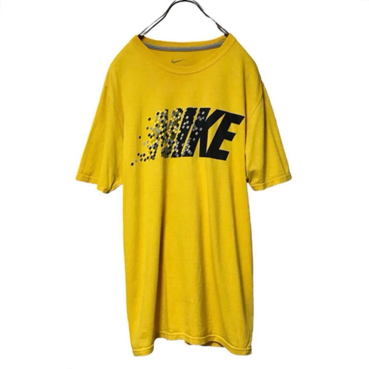 - NIKE ナイキロゴ Tシャツ 黄色 M ビッグロゴ デカロゴ スウォッシュ スウッシュ アメカジ ビンテージ 古着 ゴツ カマボコ 風車 浮世絵